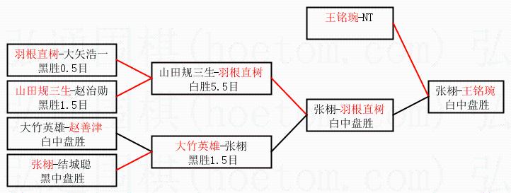 | 3.下半区半决赛羽根直树获胜,比分:羽根直树1:0张栩。棋局: | ||