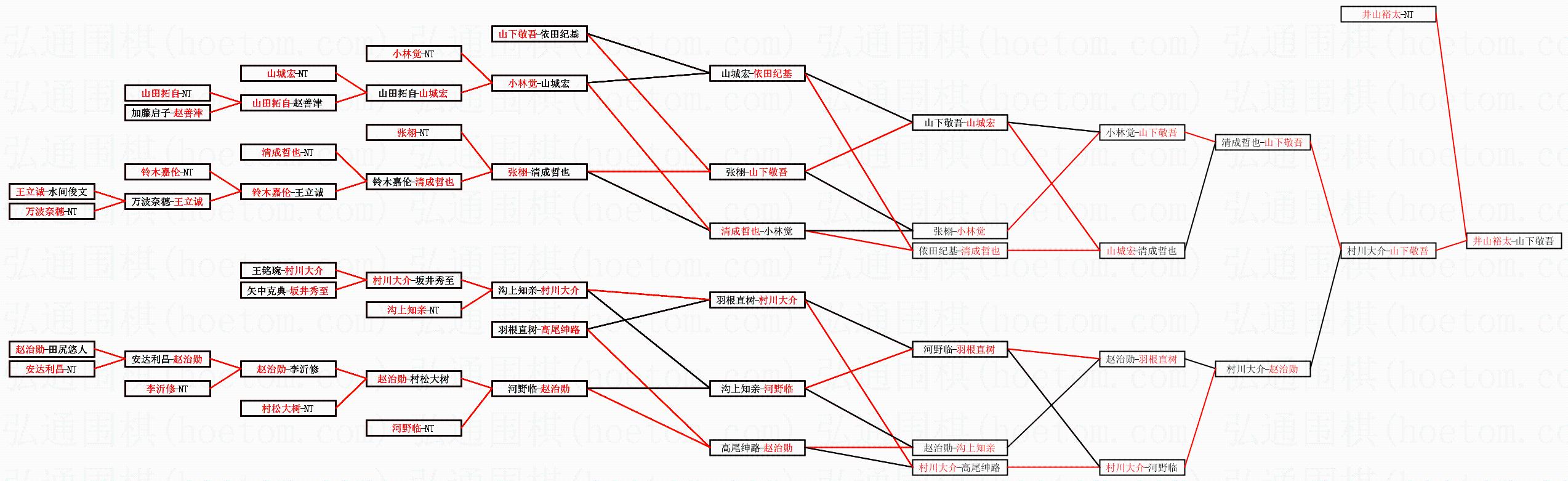 1.井山裕太获得冠军,山下敬吾获得亚军。决赛比分:井山裕太4:2山下敬吾。棋局:
