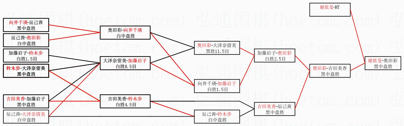 1.谢依旻获得冠军,奥田彩获得亚军。决赛比分:谢依旻2:0奥田彩。棋局: