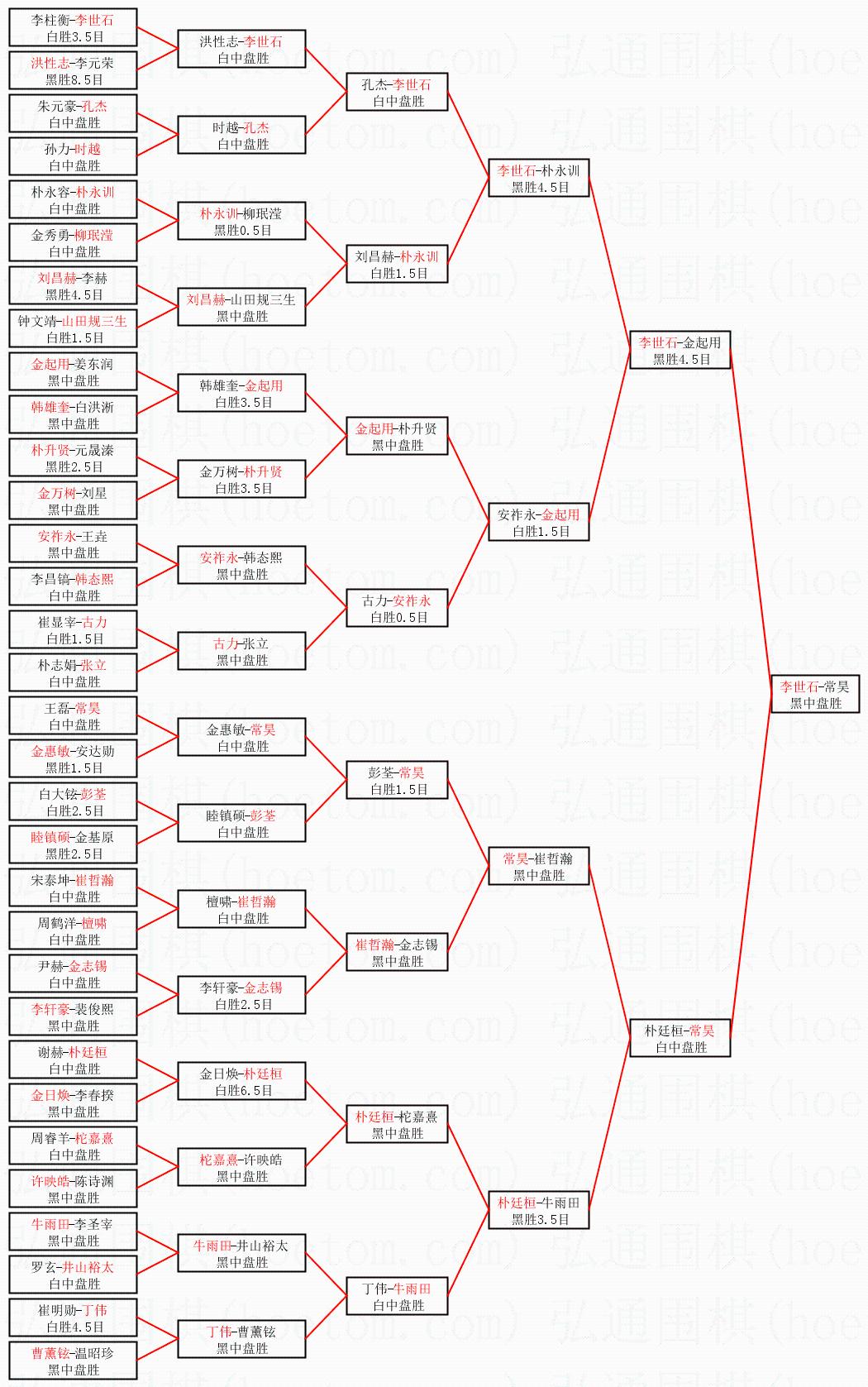 1.李世石获得冠军,常昊获得亚军。决赛比分:李世石3:0常昊。棋局: