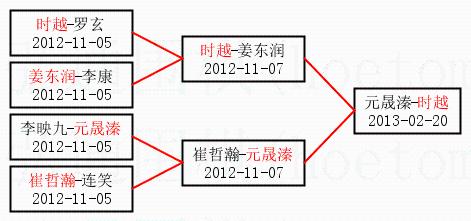 1.时越获得冠军,元晟溱获得亚军。决赛比分:时越2:0元晟溱。棋局: