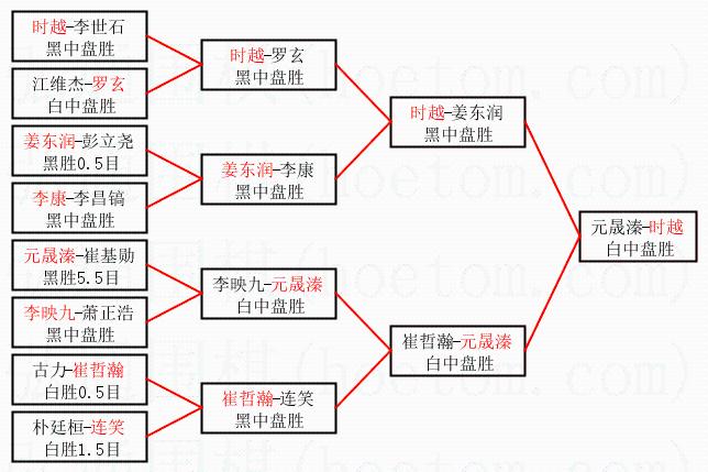 2.上半区半决赛时越获胜, 比分:时越 1:0 姜东润。棋局: