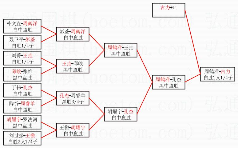 1.古力获得冠军,周鹤洋获得亚军。决赛比分:古力2:1周鹤洋。棋局: