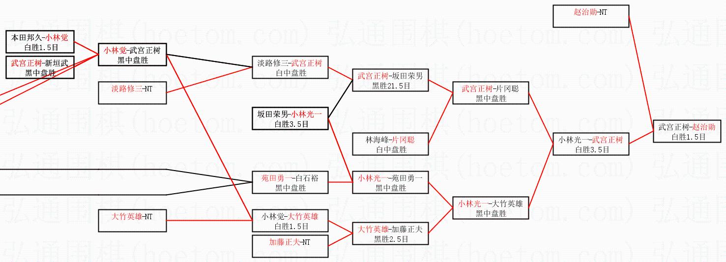 | 1.赵治勋获得冠军,武宫正树获得亚军。决赛比分:赵治勋4:3武宫正树。棋局: | ||