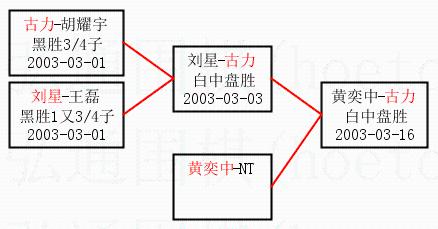 2.上半区半决赛古力获胜, 比分:古力 1:0 刘星。棋局: