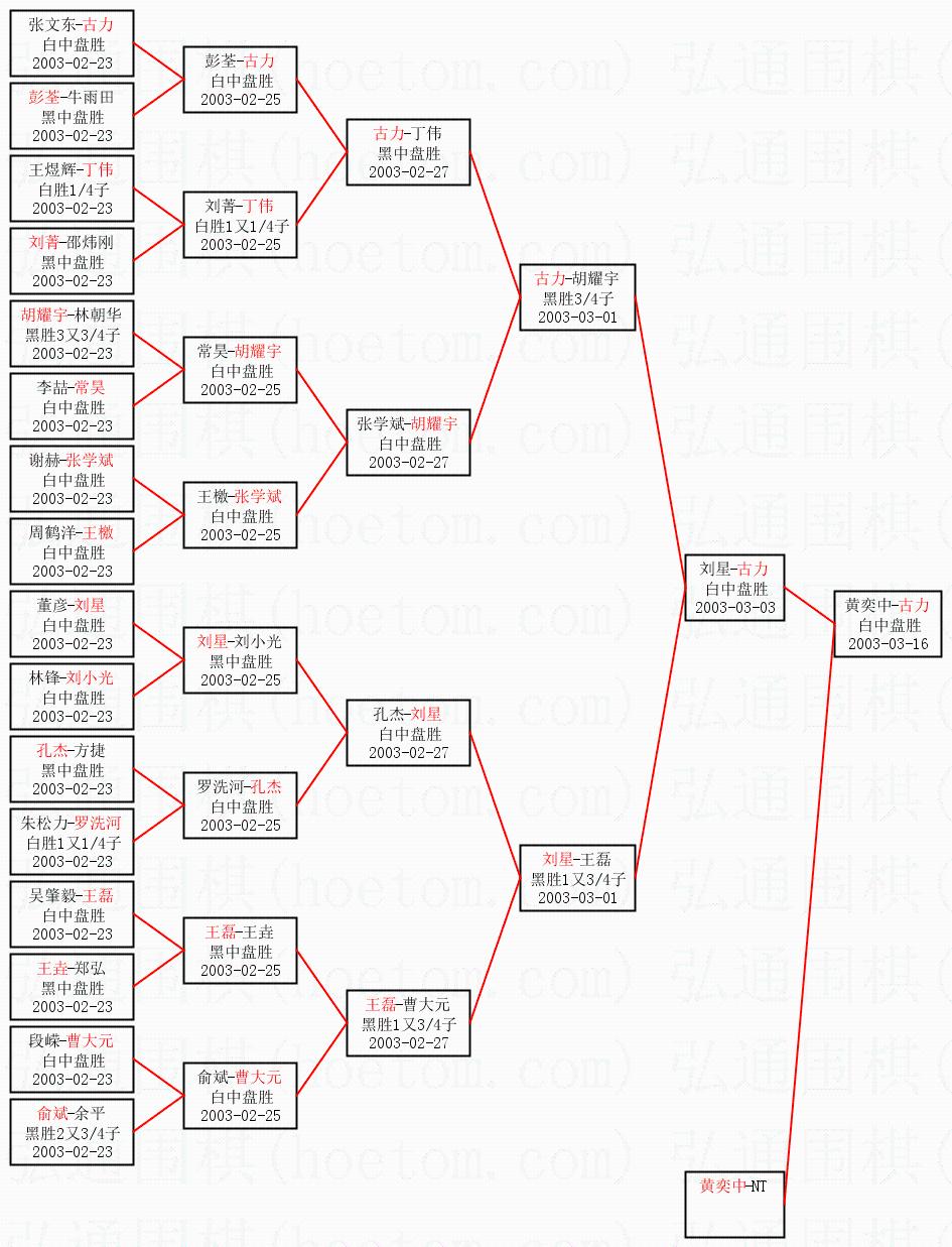 1.古力获得冠军,黄奕中获得亚军。决赛比分:古力2:1黄奕中。棋局: