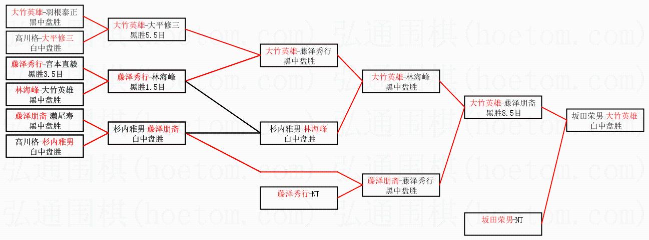 2.上半区半决赛大竹英雄获胜, 比分:大竹英雄 1:0 藤泽朋斋。棋局: