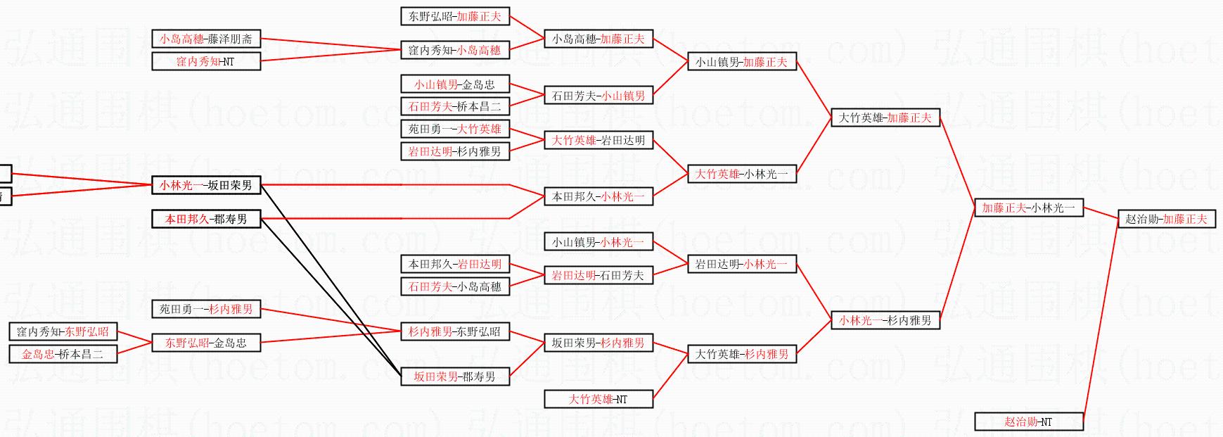 | 1.加藤正夫获得冠军,赵治勋获得亚军。决赛比分:加藤正夫3:2赵治勋。棋局: | ||