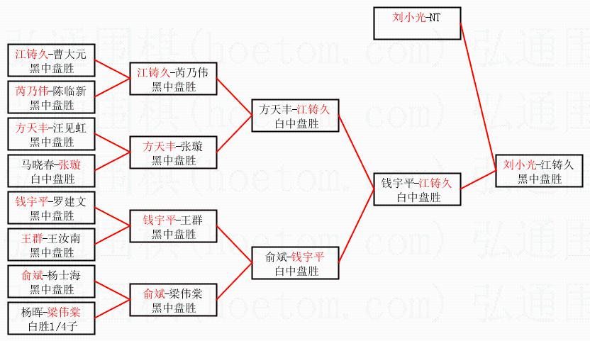1.刘小光获得冠军,江铸久获得亚军。决赛比分:刘小光3:2江铸久。棋局: