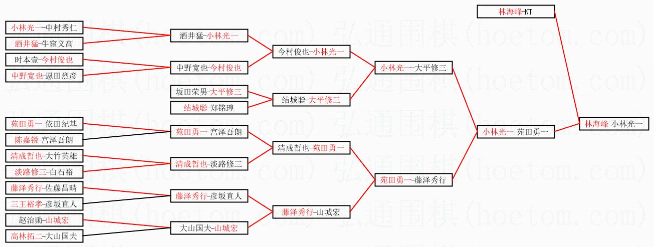 3.下半区半决赛小林光一获胜,比分:小林光一1:0苑田勇一。棋局: