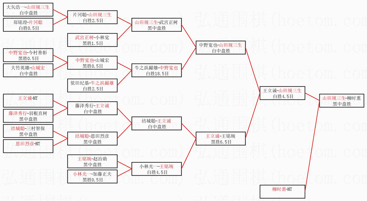 1.山田规三生获得冠军,柳时熏获得亚军。决赛比分:山田规三生3:1柳时熏。棋局: