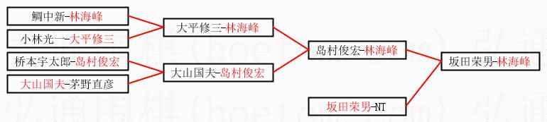 2.上半区半决赛林海峰获胜, 比分:林海峰 1:0 岛村俊宏。棋局: