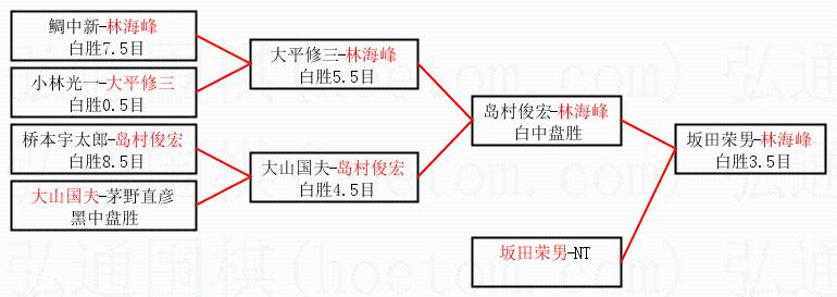 2.上半区半决赛林海峰获胜, 比分:林海峰 1:0 岛村俊宏。棋局: