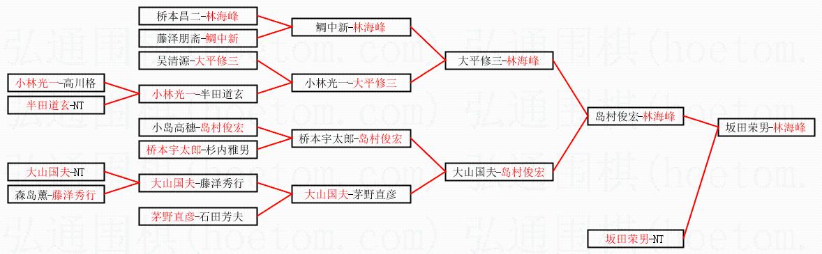 2.上半区半决赛林海峰获胜, 比分:林海峰 1:0 岛村俊宏。棋局: