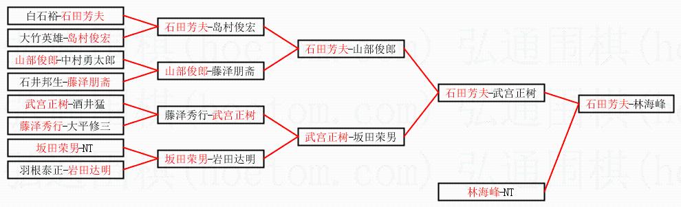 2.上半区半决赛石田芳夫获胜, 比分:石田芳夫 1:0 武宫正树。棋局:
