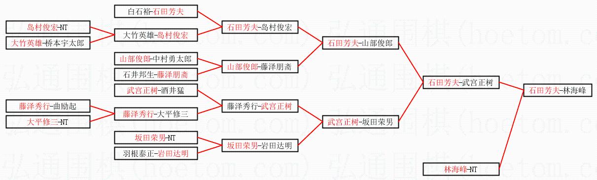 2.上半区半决赛石田芳夫获胜, 比分:石田芳夫 1:0 武宫正树。棋局: