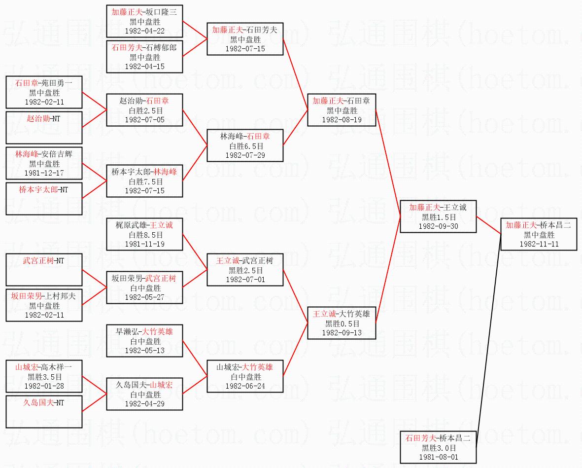 | 1.加藤正夫获得冠军,桥本昌二获得亚军。决赛比分:加藤正夫2:0桥本昌二。棋局: | ||