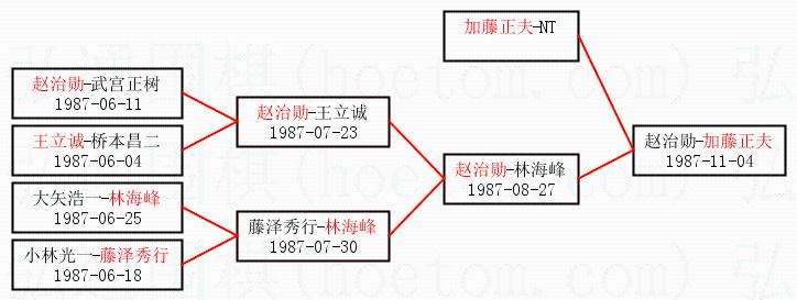 3.下半区半决赛赵治勋获胜,比分:赵治勋1:0林海峰。棋局: