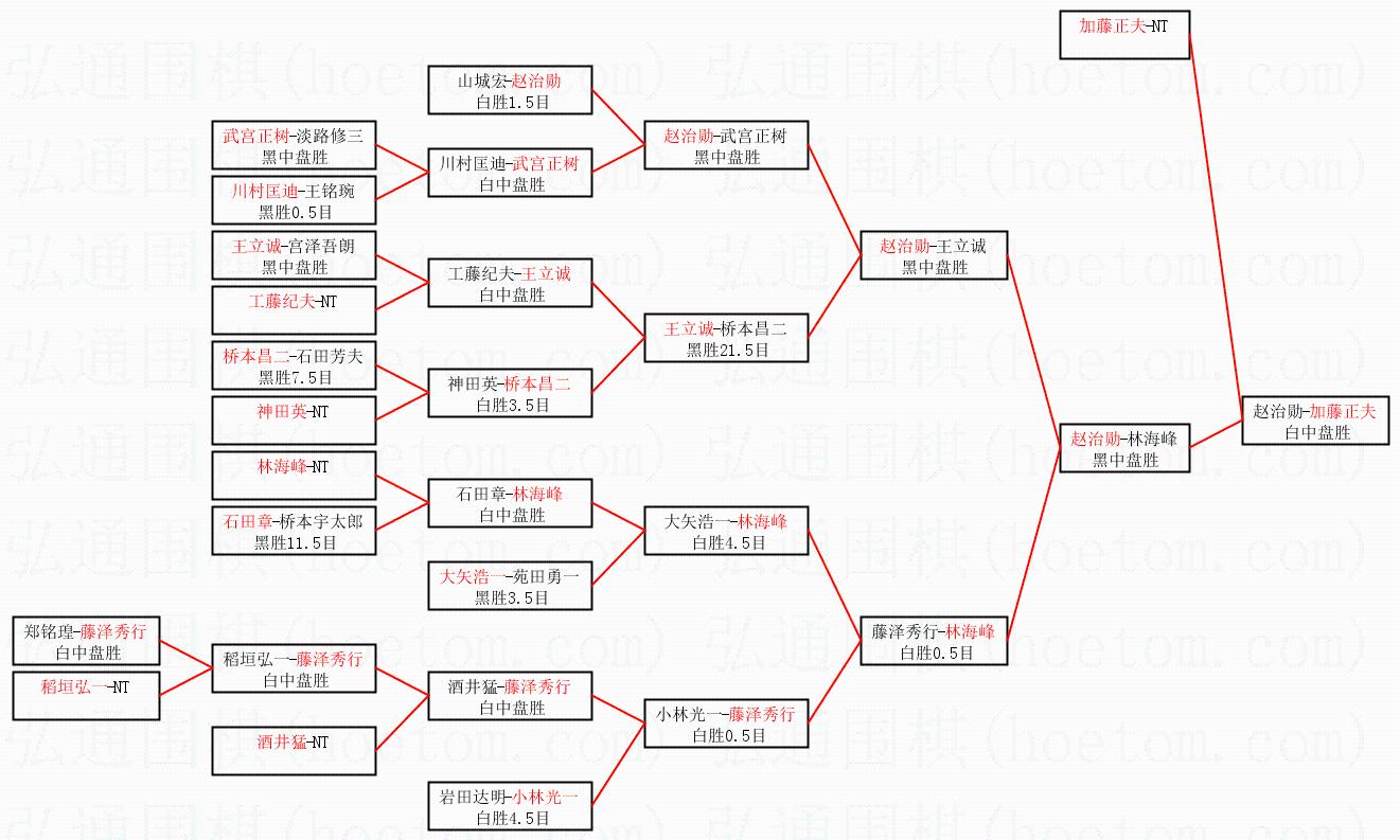 1.加藤正夫获得冠军,赵治勋获得亚军。决赛比分:加藤正夫3:1赵治勋。棋局: