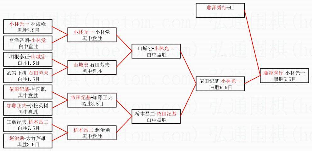 1.藤泽秀行获得冠军,小林光一获得亚军。决赛比分:藤泽秀行3:2小林光一。棋局: