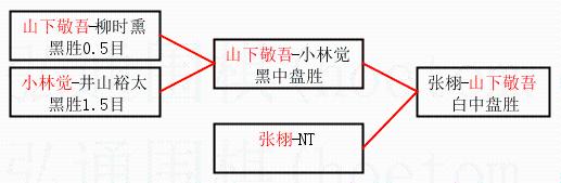 | 2.上半区半决赛山下敬吾获胜, 比分:山下敬吾 1:0 小林觉。棋局: | ||
