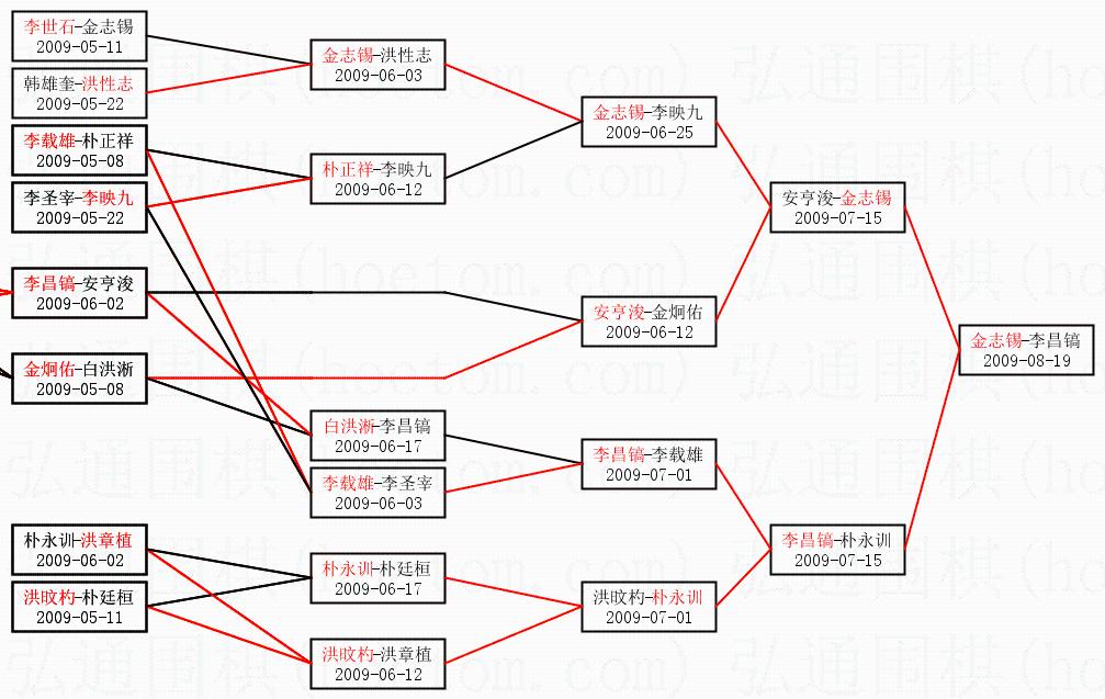 1.金志锡获得冠军,李昌镐获得亚军。决赛比分:金志锡2:0李昌镐。棋局: