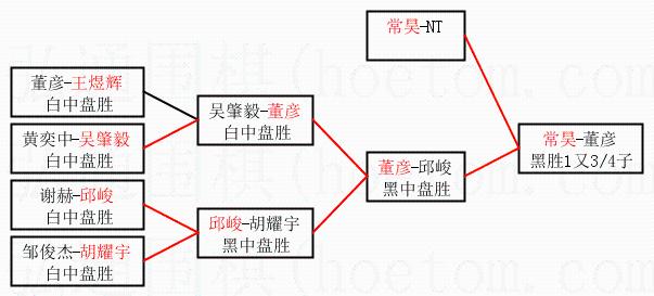 1.常昊获得冠军,董彦获得亚军。决赛比分:常昊3:1董彦。棋局: