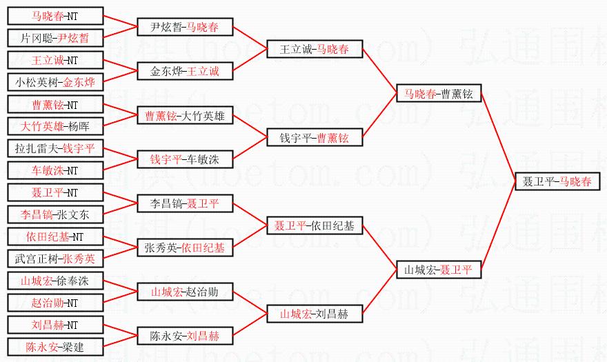| 2.上半区半决赛马晓春获胜, 比分:马晓春 2:1 曹薰铉。棋局: | ||