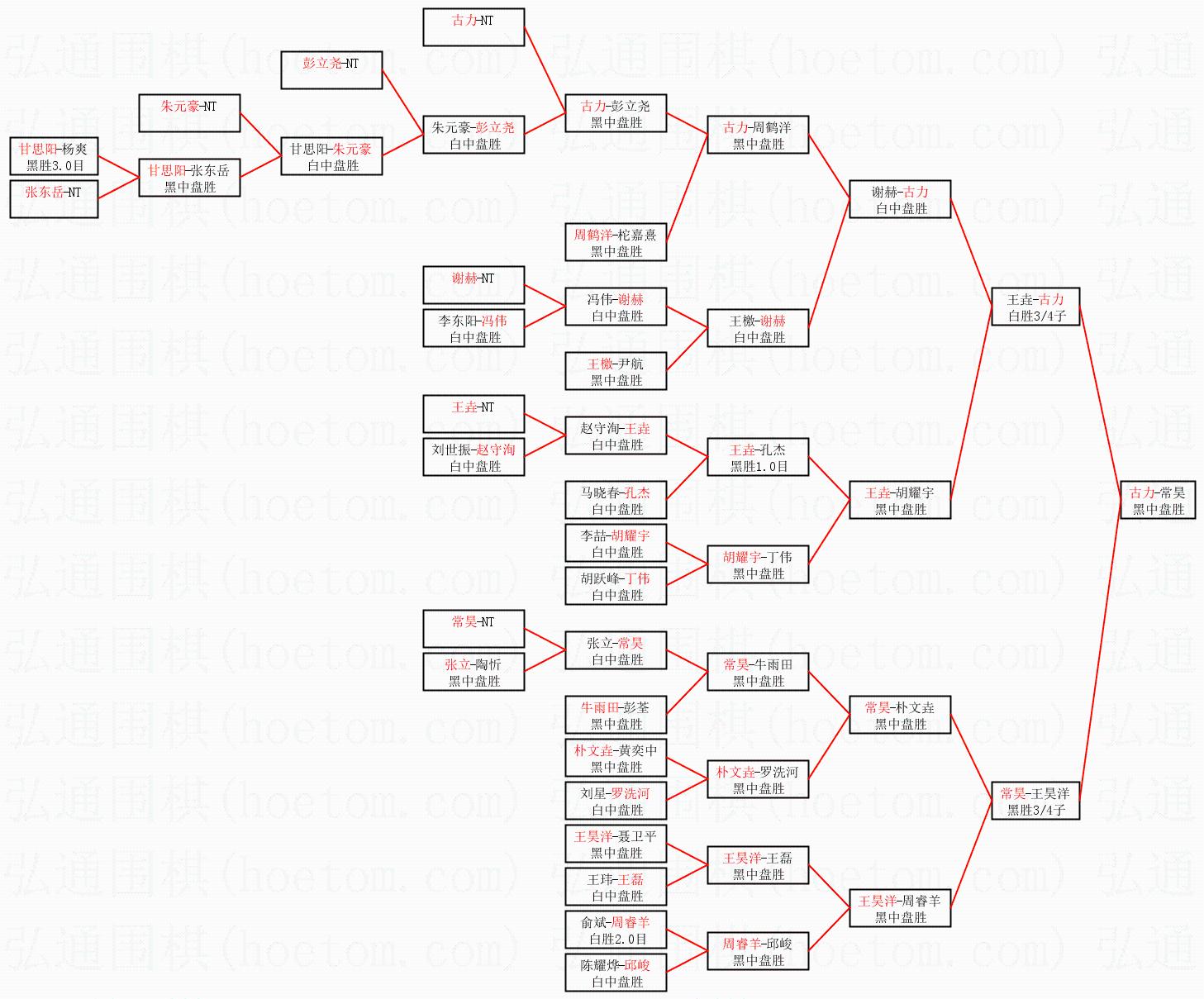 1.古力获得冠军,常昊获得亚军。决赛比分:古力1:0常昊。棋局:
