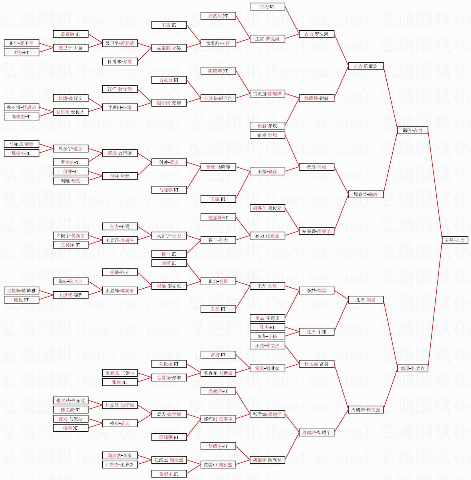 1.古力获得冠军,刘星获得亚军。决赛比分:古力2:1刘星。棋局:
