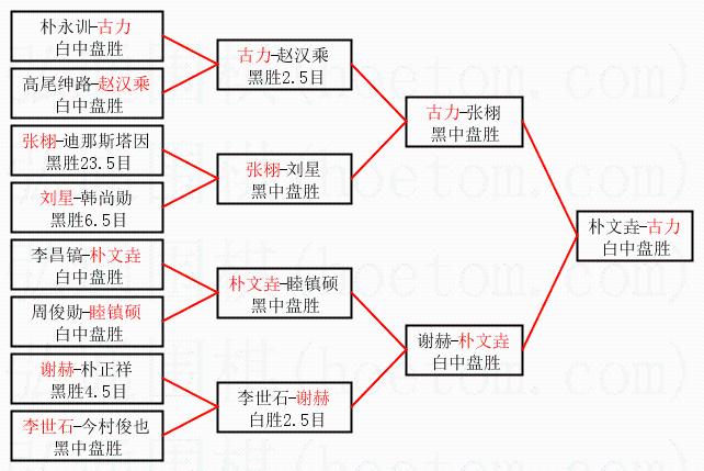 1.古力获得冠军,朴文垚获得亚军。决赛比分:古力2:0朴文垚。棋局: