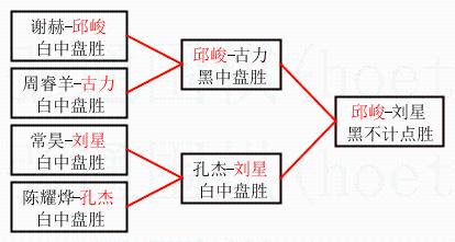2.上半区半决赛邱峻获胜, 比分:邱峻 2:1 古力。棋局: