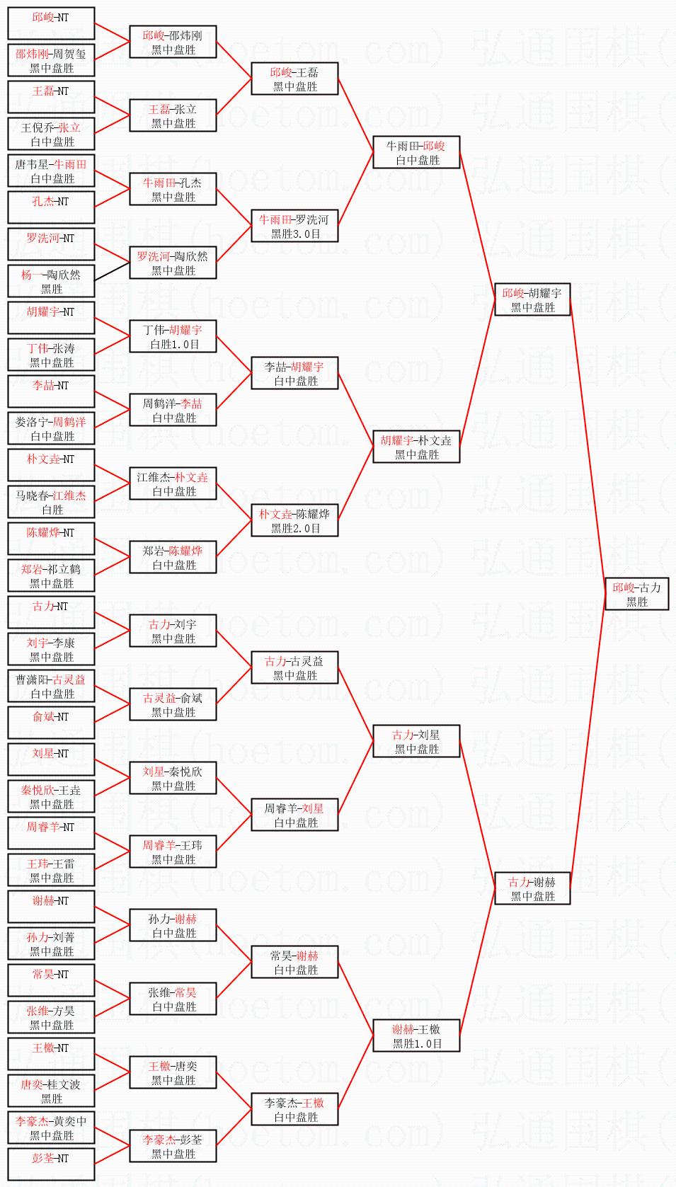 1.邱峻获得冠军,古力获得亚军。决赛比分:邱峻1:0古力。棋局: