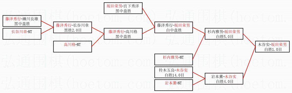1.坂田荣男获得冠军,木谷实获得亚军。决赛比分:坂田荣男2:1木谷实。棋局: