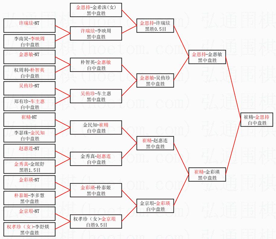 1.金恩持获得冠军,崔精获得亚军。决赛比分:金恩持2:1崔精。棋局: