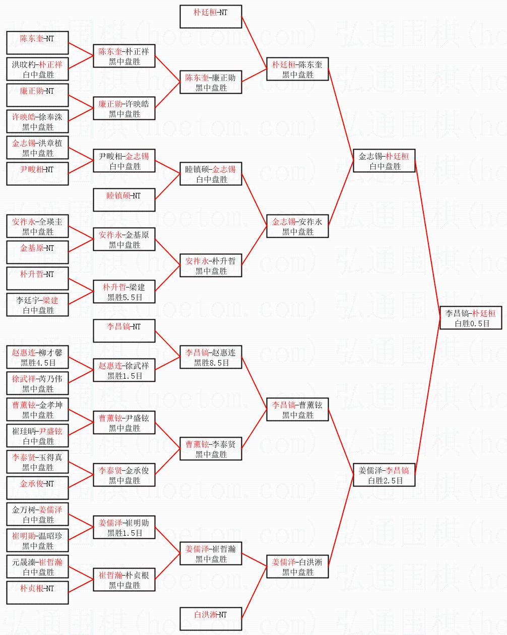 2.上半区半决赛朴廷桓获胜, 比分:朴廷桓 1:0 金志锡。棋局: