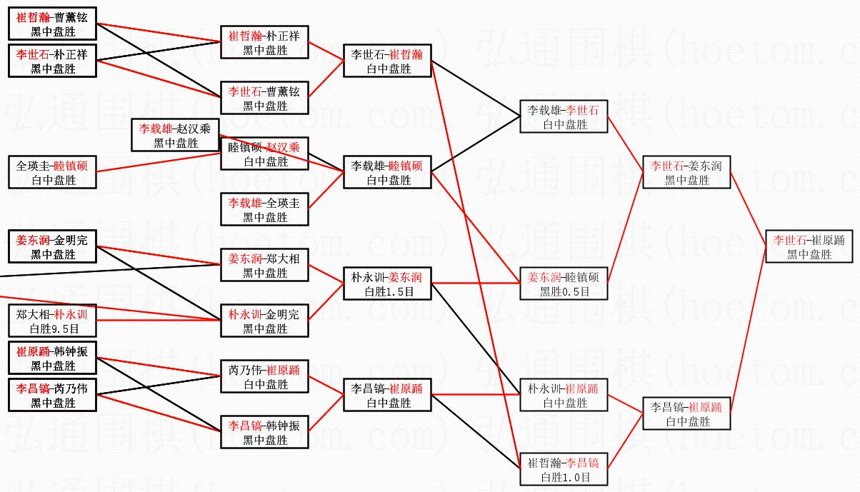 3.下半区半决赛崔原踊获胜,比分:崔原踊1:0李昌镐。棋局: