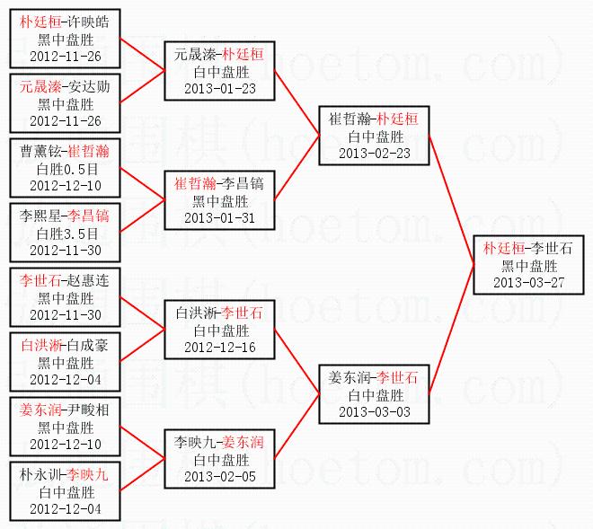 | 1.朴廷桓获得冠军,李世石获得亚军。决赛比分:朴廷桓2:0李世石。棋局: | ||