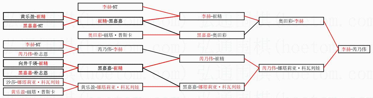 2.上半区半决赛李赫获胜, 比分:李赫 1:0 奥田彩。棋局: