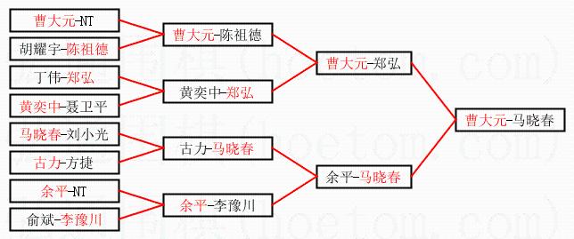 3.下半区半决赛马晓春获胜,比分:马晓春1:0余平。棋局: