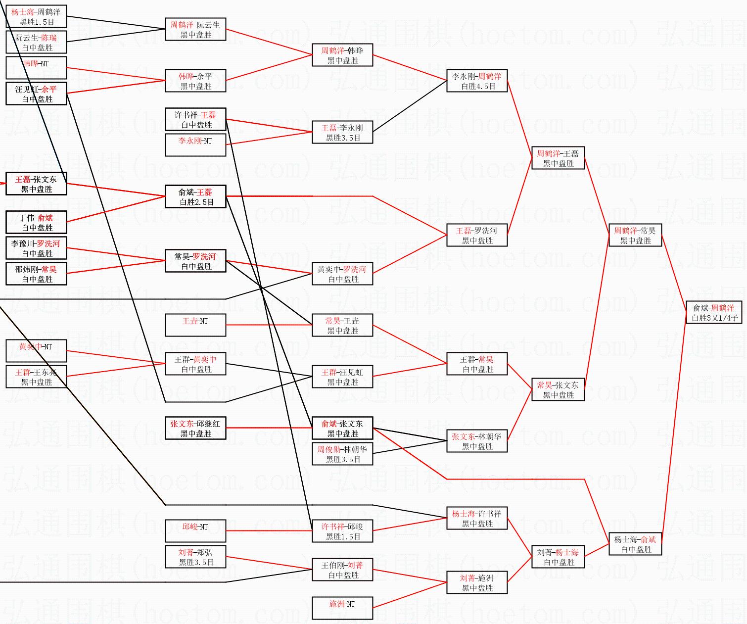 1.周鹤洋获得冠军,俞斌获得亚军。决赛比分:周鹤洋1:0俞斌。棋局: