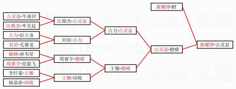 1.陈耀烨获得冠军,古灵益获得亚军。决赛比分:陈耀烨2:0古灵益。棋局: