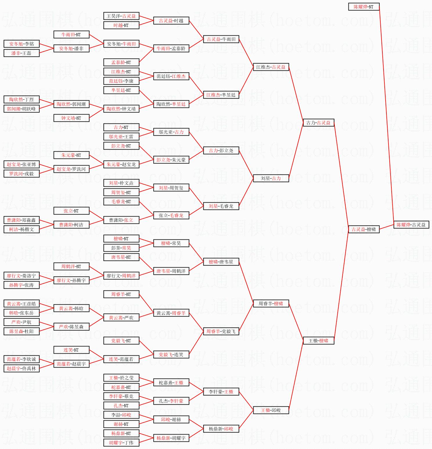 1.陈耀烨获得冠军,古灵益获得亚军。决赛比分:陈耀烨2:0古灵益。棋局: