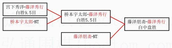 2.上半区半决赛藤泽秀行获胜, 比分:藤泽秀行 1:0 桥本宇太郎。棋局: