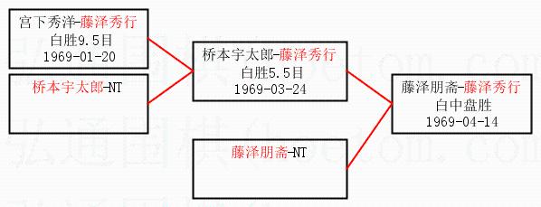 2.上半区半决赛藤泽秀行获胜, 比分:藤泽秀行 1:0 桥本宇太郎。棋局: