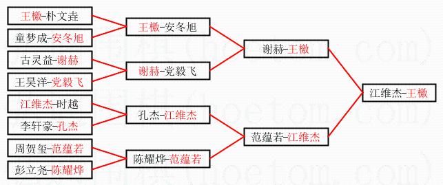 1.王檄获得冠军,江维杰获得亚军。决赛比分:王檄1:0江维杰。棋局: