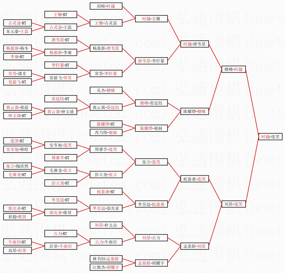 1.时越获得冠军,连笑获得亚军。决赛比分:时越2:0连笑。棋局: