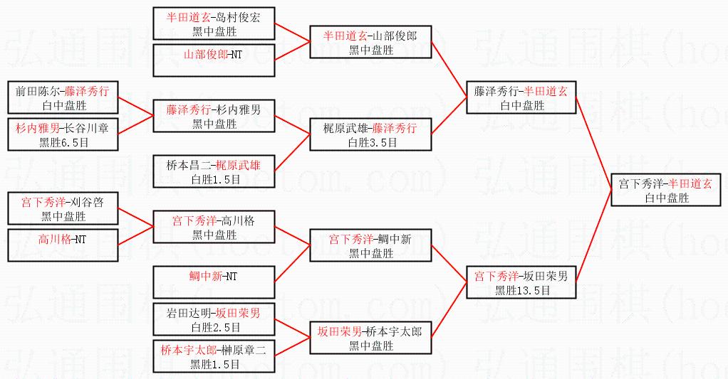 | 2.上半区半决赛半田道玄获胜, 比分:半田道玄 1:0 藤泽秀行。棋局: | ||