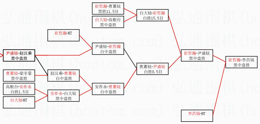 | 2.上半区半决赛崔哲瀚获胜, 比分:崔哲瀚 2:0 尹盛铉。棋局: | ||