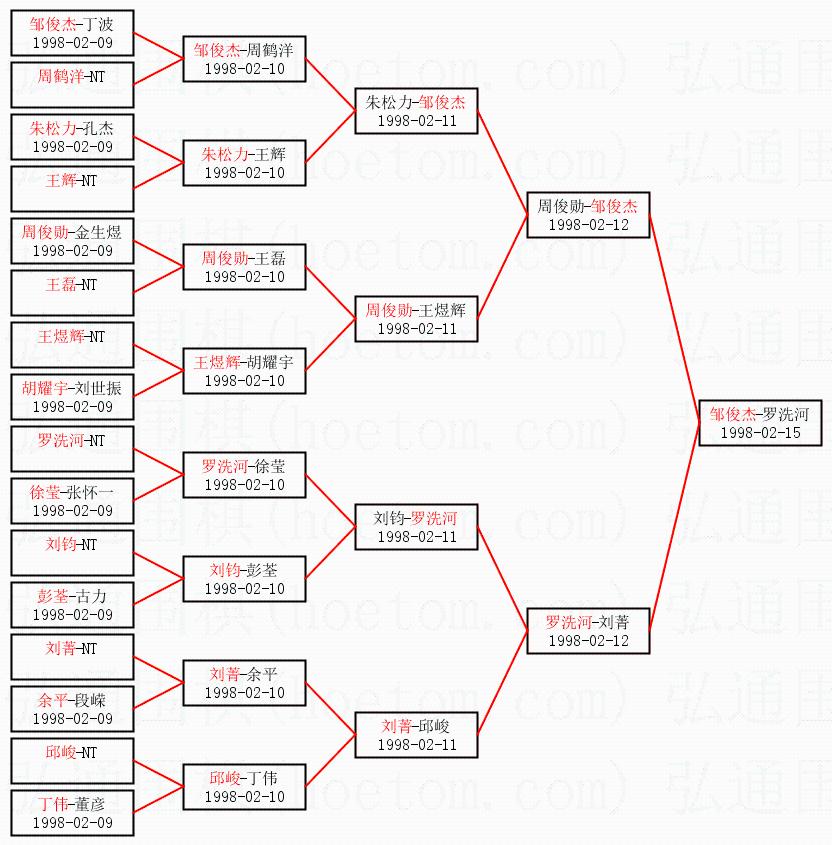 | 1998-02-14 罗洗河-邹俊杰 白胜1又1/4子 | ||